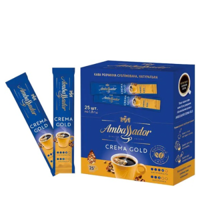 Купить Ambassador Crema Gold 3в1 стики (1,8г×25) стоит тем, кто ценит комфорт, скорость и стабильное качество кофейного напитка.