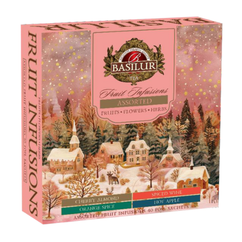 Чай Basilur “Рождественское Ассорти” 40 пак. саше - праздничный набор ароматных фруктовых чаёв, созданных, чтобы подарить тепло и уют зимними вечерами. В каждой чашке — волшебное сочетание натуральных ингредиентов и пряных ароматов, которое превращает обычное чаепитие в настоящий ритуал.