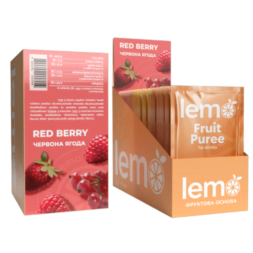 LEMO Червона ягода - це універсальний ягідний смак, який додає напоям яскравості, аромату та робить їх справжнім хітом меню.
