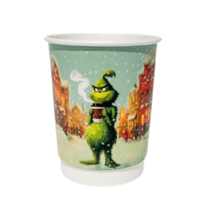 Створений для холодних зимових днів наш двошаровий паперовий стакан – ідеальний вибір для гарячих напоїв. Завдяки подвійній стінці він зберігає тепло напою, не нагріваючи зовнішню поверхню, що дозволяє зручно тримати стакан в руці. З яскравим зимовим дизайном, персонажем Грінчем та зимовими мотивами, цей стакан додасть затишку та святковий настрій у будь-який момент.