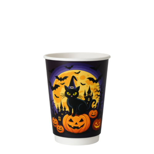 Двошаровий паперовий стакан Halloween 400 мл – яскравий вибір для кави та осінніх напоїв.