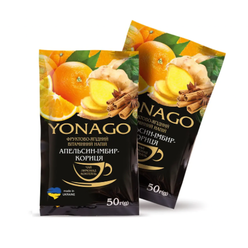 Концентрат Апельсин-Имбирь-Корица 50 г YONAGO – ароматная витаминная композиция для согревающих напитков в холодный сезон. Сочный апельсин придает яркую цитрусовую нотку, имбирь – легкую стрижку, а корица создает теплый, уютный аромат. Идеально подходит для приготовления горячего чая, глинтвейна без алкоголя, зимних лимонадов и сезонных напитков HoReCa.